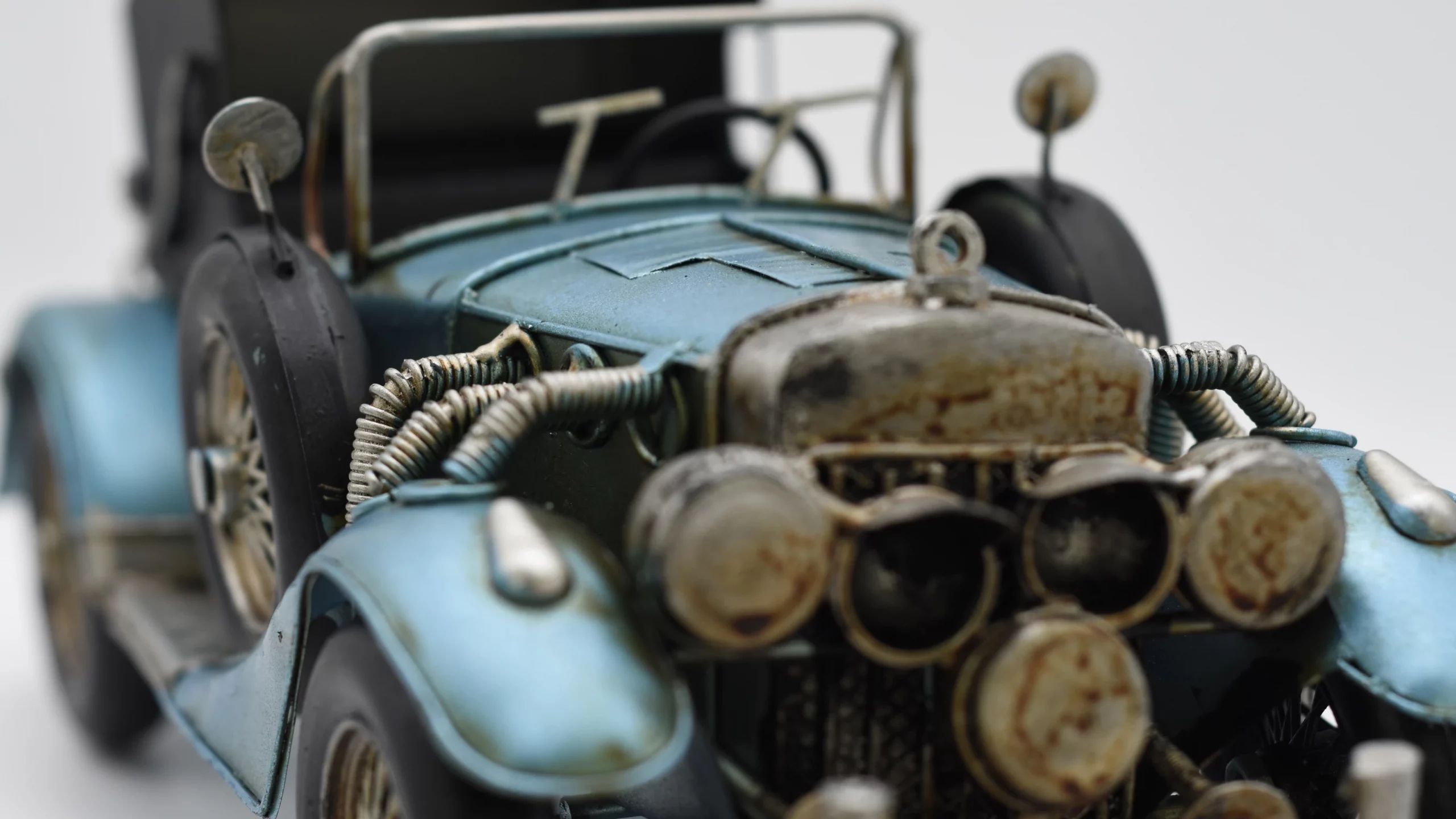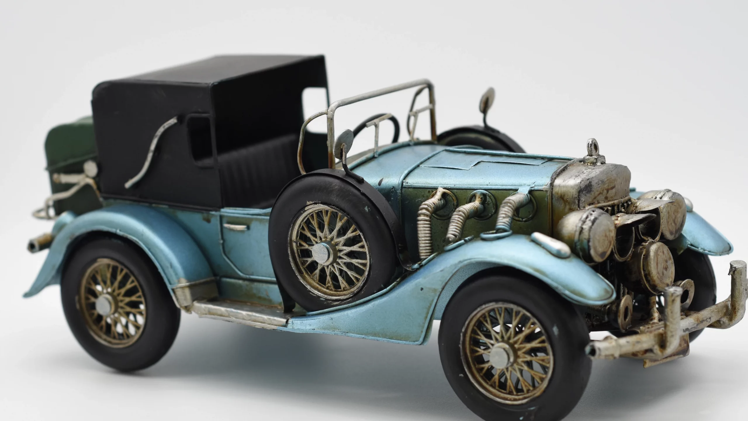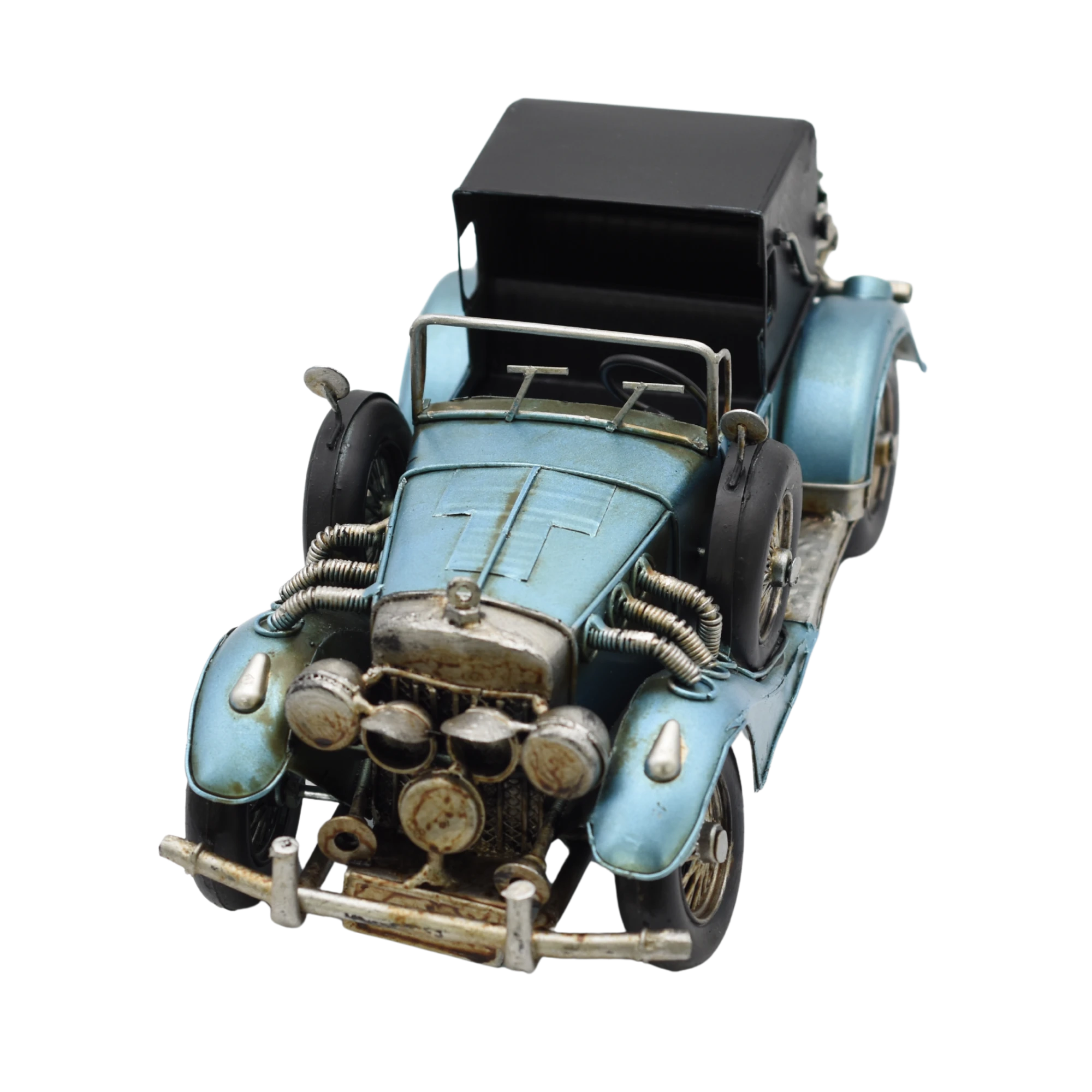 Aus unserer Reihe historischer Miniaturfahrzeuge zeigen wir Ihnen unser Miniaturmodel eines Oldtimers aus Zinn aus den 1920er Jahren in Metallic-Blau