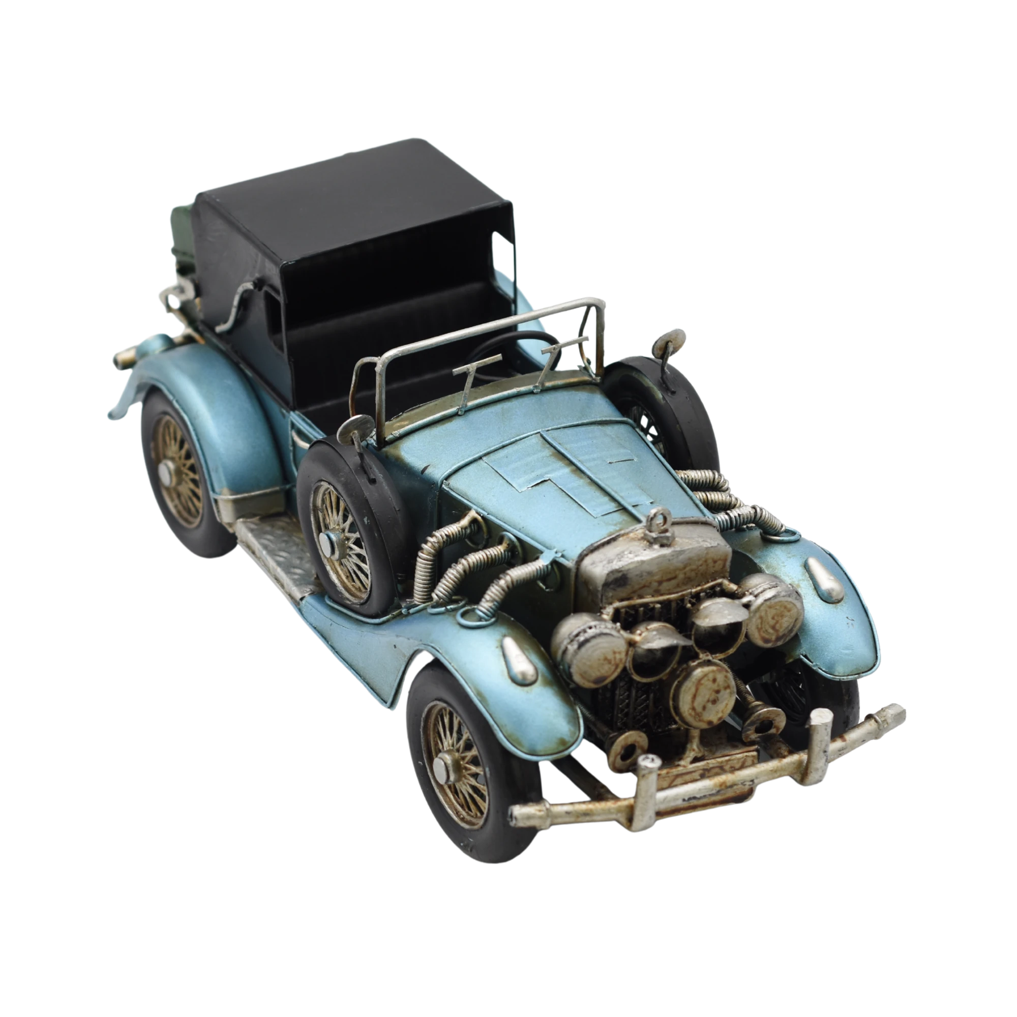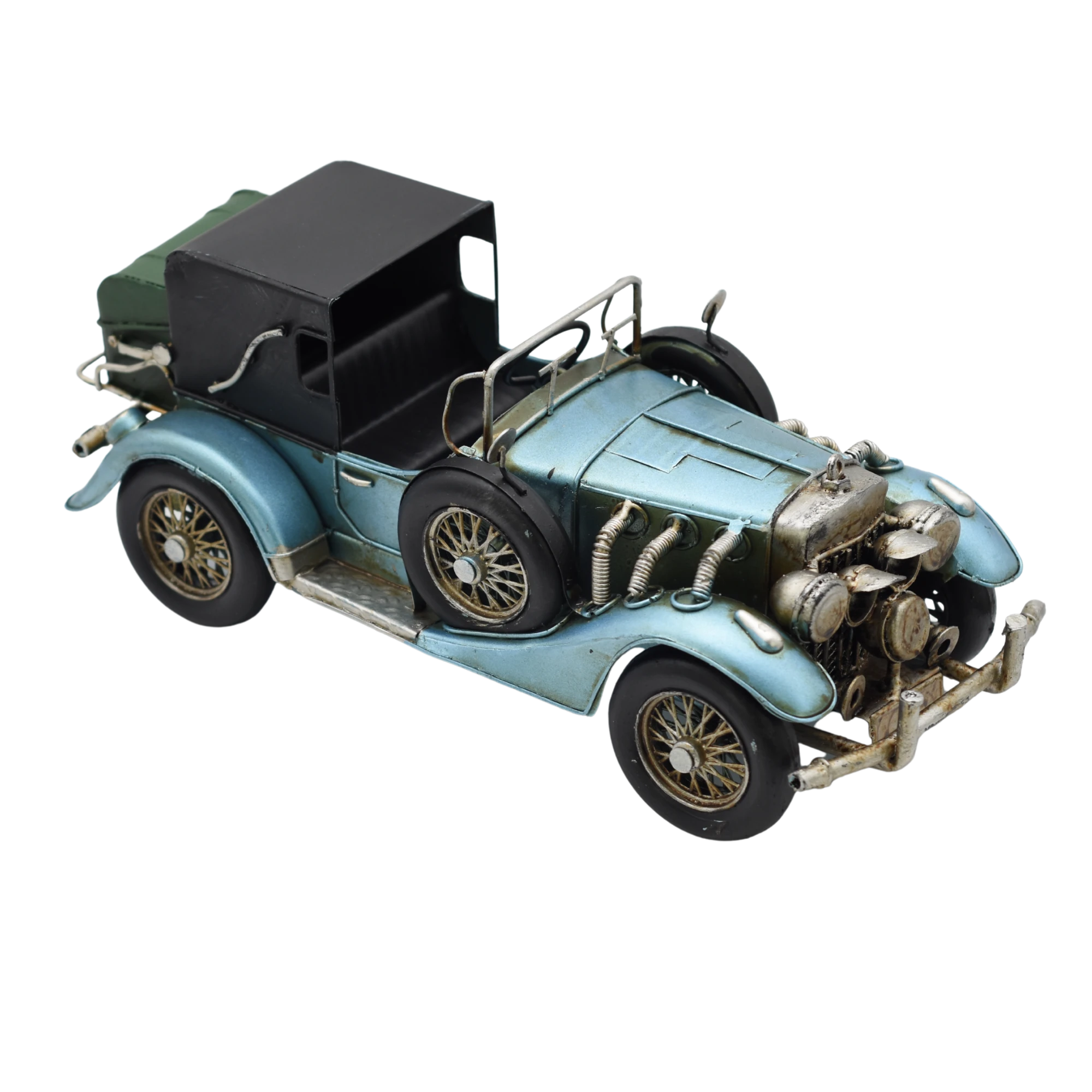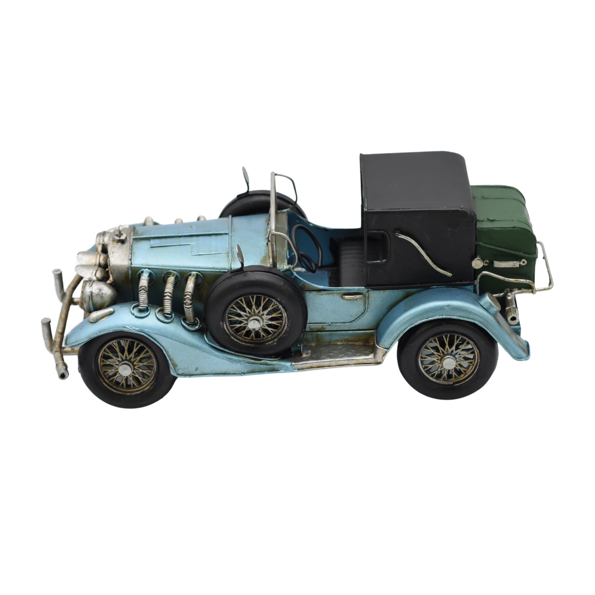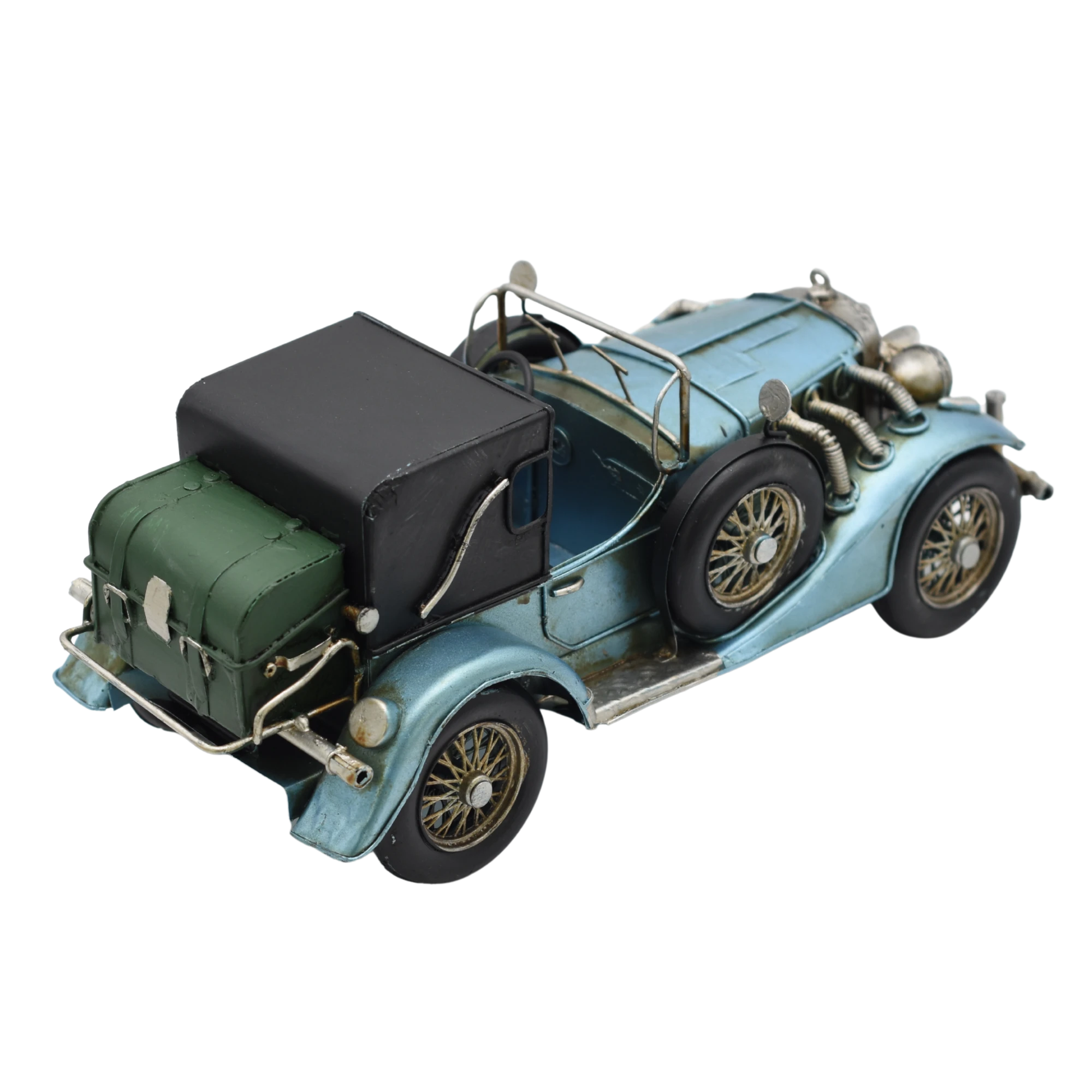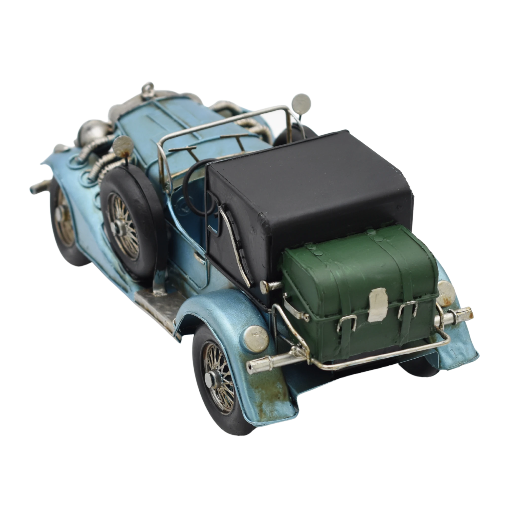 Dieser Oldtimer ist gerade so den 1910ern entwachsen und steuert uns durch eine spannende Zeit, in der die ersten Schnellstraßen entstehen. Wie viel der wohl auf den Tacho bringt? Sicher wird dabei alles rütteln und wackeln. Der metallic-blaue Zweisitzer hat die ideale Größe, um ihn sichtbar auf Regalbretten oder Schränken zu platzieren. Ihre Projektionsfläche für die Goldenen Zwanziger!